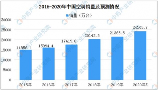 從銷量來看:從2016年至今我國空調銷售保持了持續(xù)上升的發(fā)展趨勢,2019年國內空調總銷量21365.5萬臺,相比2018年的20142.5萬臺增長了6.07%,預計2020年我國空調總銷量將達24105.7萬臺。